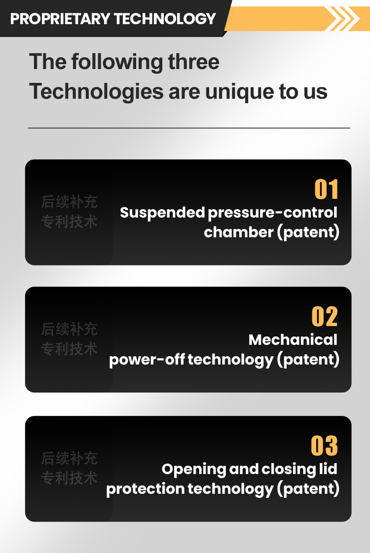 分(fēn)體(tǐ)式設計(jì),提拿(ná)随心放(fàng)置;一(yī)鍵反向排汽不(bù)燙手;小(xiǎo)容量,實現(xiàn)炖、煮、焖、煲、焗。